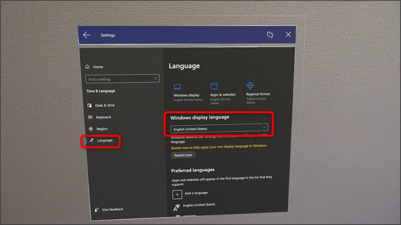 How to switch language settings to English mixpaceサポートデスク July 31, 2023 04:10 Updated From the Start menu and select Settings > Time and Language. Select "Language" and then select English from "Windows Display Language". *Only Japanese or English is supported. *You cannot change the language setting within the application.