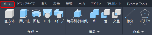 2. [ ホーム ] タブの [ 作成 ] から3Dモデルを作成します。(今回は「直方体」でご説明します。)